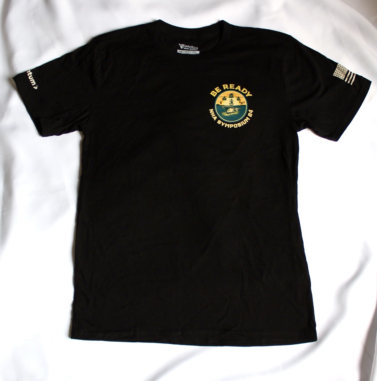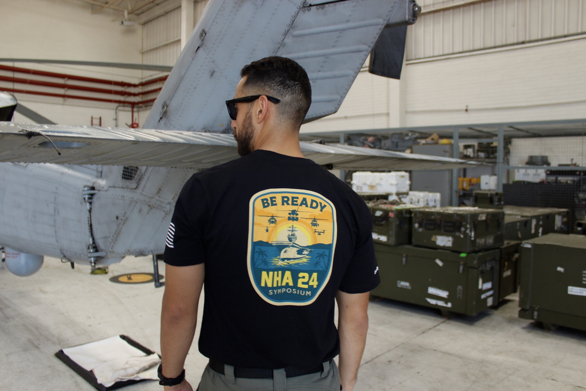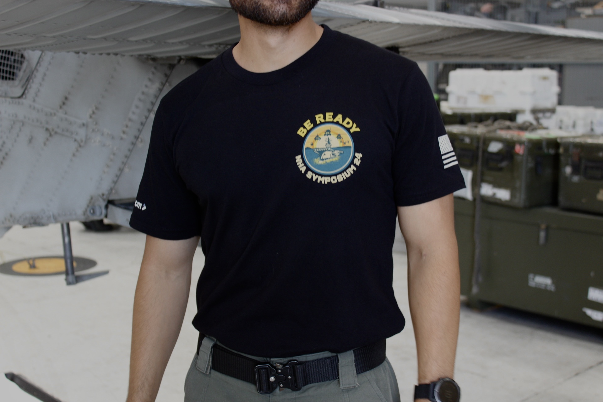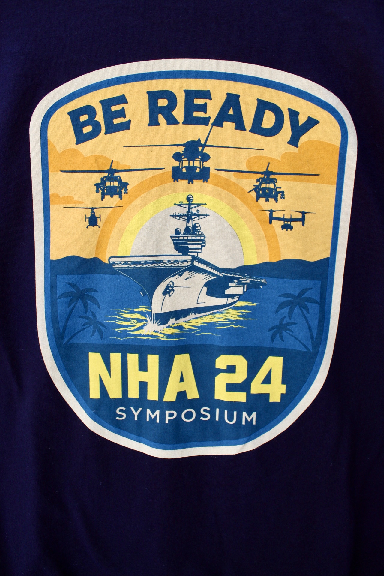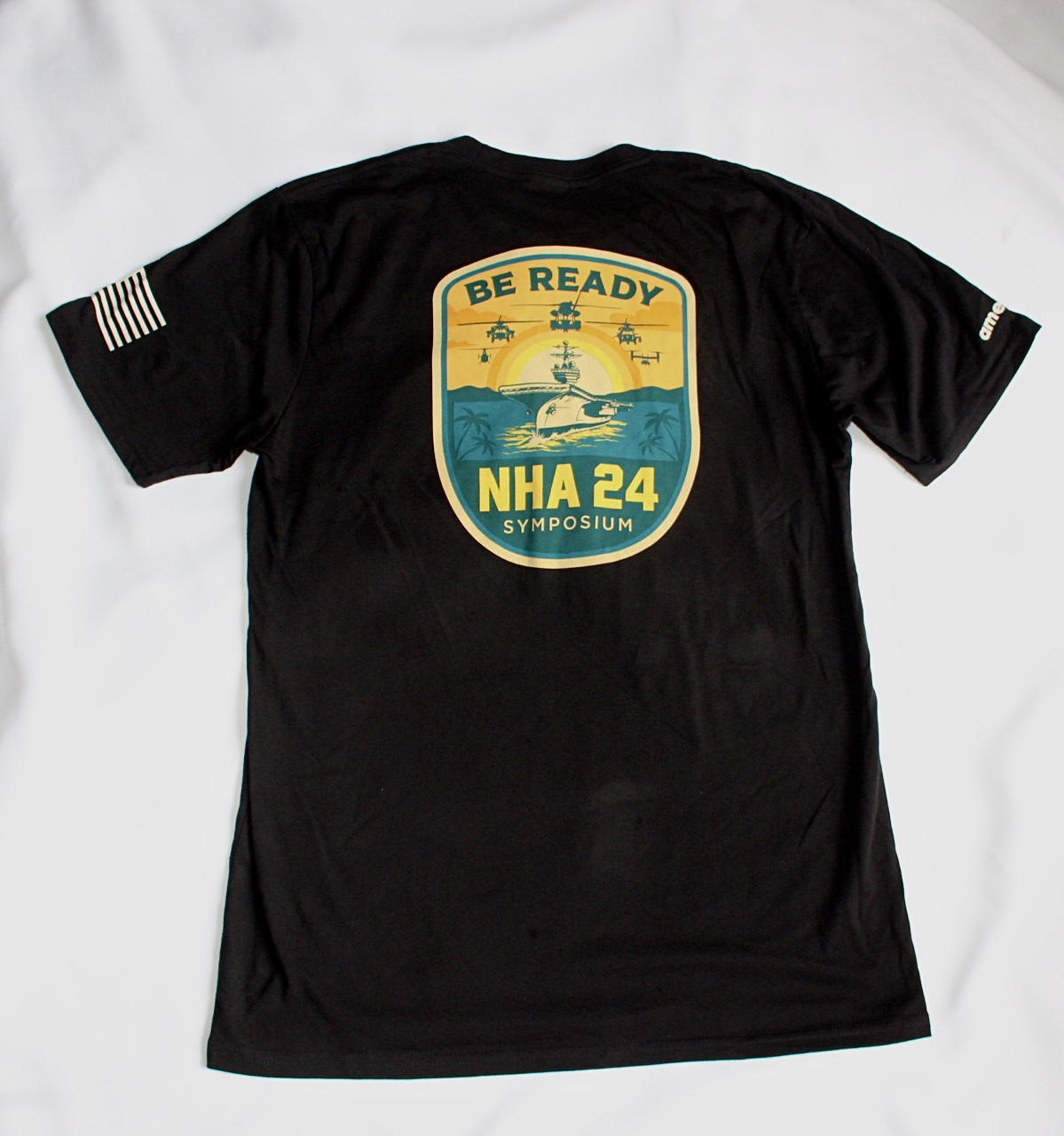 Commemorate the 2024 NHA Symposium with the official “Be Ready” shirt — a striking design that captures the readiness and resilience of naval aviation. Featuring a vivid sunset backdrop, a carrier silhouette, and multiple helicopter profiles, this shirt honors the fleet’s dedication to being mission-ready at all times.