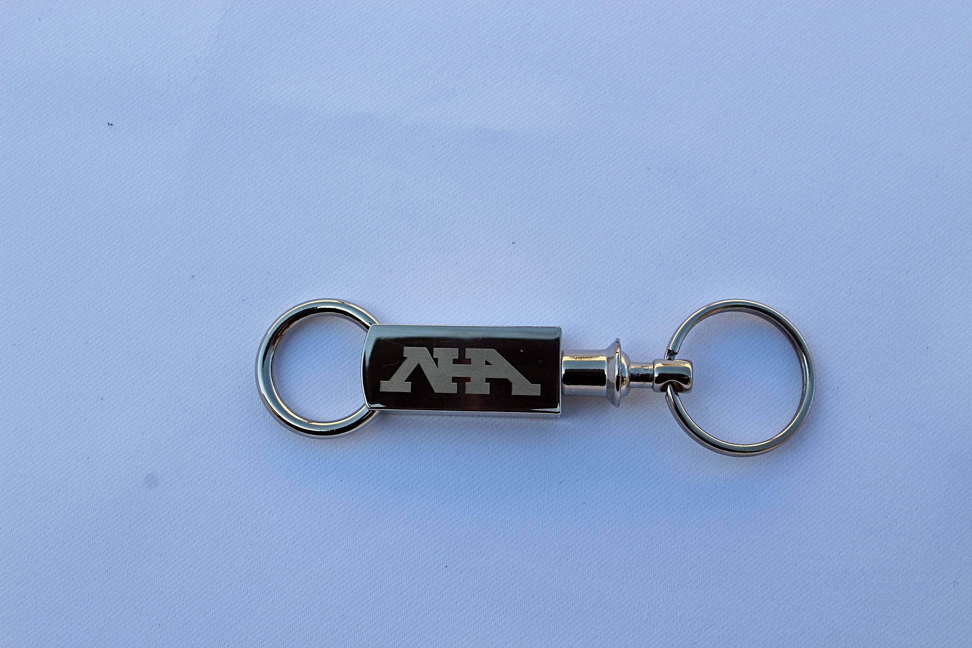 Keep your keys organized with the sleek and functional NHA Detachable Keychain. Crafted from polished metal with the engraved NHA logo, this two-ring design allows for quick release — perfect for separating your vehicle, gear, or access keys on the go.