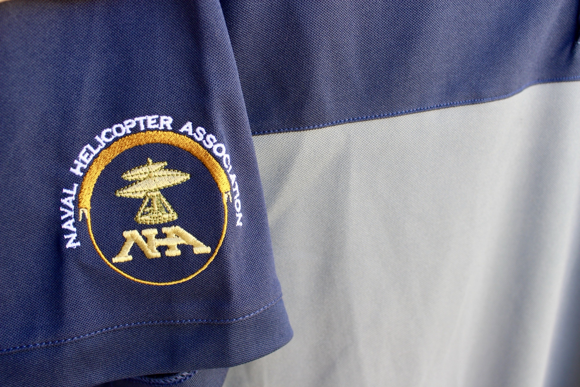 The left sleeve features the embroidered NHA logo, representing the Naval Helicopter Association with pride and professionalism, while the Nike swoosh on the right sleeve adds a touch of athletic style.