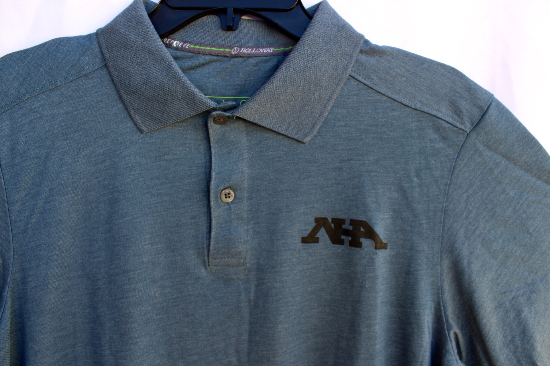 Sustainability meets style with the NHA Holloway Polo — available in sage green and dusty blue. Made from Holloway’s “Recycling Together” performance fabric, each polo helps reduce waste — with material crafted from up to six recycled plastic bottles.
